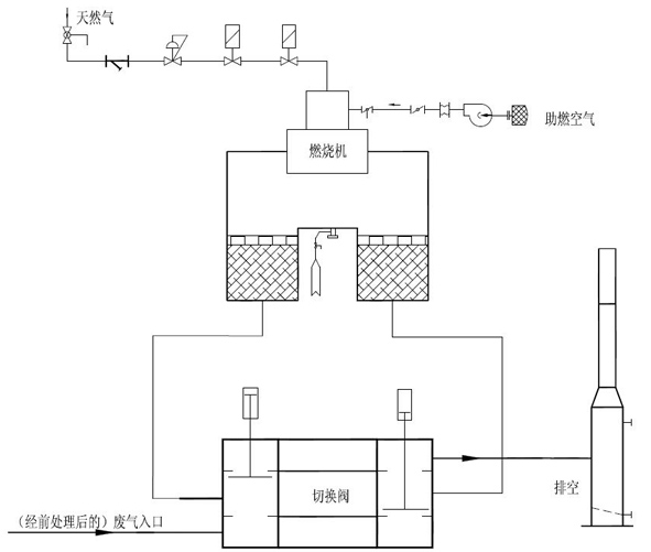 其原理是把有機廢氣加熱到760攝氏度(具體需要看成分)以上,使廢氣中的VOC在氧化分解成二氧化碳和水。氧化產(chǎn)生的高溫氣體流經(jīng)特制的陶瓷蓄熱體,使陶瓷體升溫而蓄熱,此蓄熱用于預熱后續(xù)進入的有機廢氣。從而節(jié)省廢氣升溫的燃料消耗。陶瓷蓄熱室應分成兩個(含兩個)以上,每個蓄熱室依次經(jīng)歷蓄熱-放熱-清掃等程序,周而復始,連續(xù)工作。蓄熱室放熱后應立即引入適量潔凈空氣對該蓄熱室進行清掃(以保證VOC去除率在98%以上),只有待清掃完成后才能進入蓄熱程序。否則殘留的VOCS隨煙氣排放到煙囪從而降低處理效率。