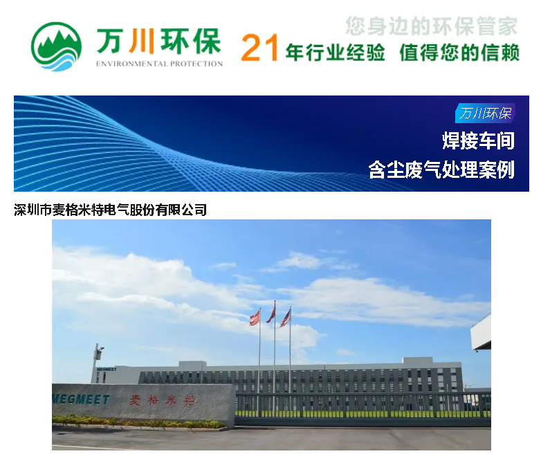 簡介:深圳麥格米特電氣股份有限公司,是電氣自動化領(lǐng)域硬件和軟件研發(fā)、生產(chǎn)、銷售與服務(wù)的?站式解決方案提供商工程師根據(jù)現(xiàn)場焊接煙塵性質(zhì)、粒徑、現(xiàn)場工況等因素考量,故采用脈沖濾筒除塵器作為處理設(shè)備