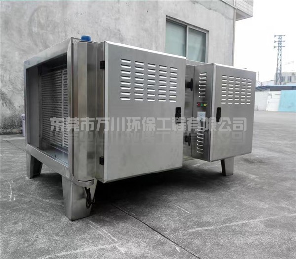 飯?zhí)糜蜔熅哂幸欢ǖ亩拘?,溫度高、有腐蝕性,長期吸入對(duì)人體造成嚴(yán)重的傷害,而且還會(huì)對(duì)周邊環(huán)境造成污染,要經(jīng)過處理后才可以排放。鑒于對(duì)這類污染物的特點(diǎn),我們采用了等離子凈化器去處理,設(shè)備使用耐腐蝕、耐高溫的不銹鋼作為設(shè)備的材料,可以延長設(shè)備的壽命。通風(fēng)管也是采用了耐腐蝕耐高溫的材料制作而成的,通風(fēng)管道中間安裝過濾網(wǎng),可以在油煙進(jìn)去的時(shí)候過大顆粒的污染物。