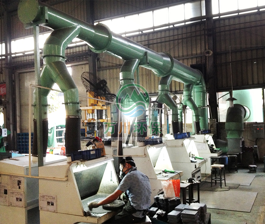 因生產(chǎn)打磨汽車配件時(shí)會(huì)產(chǎn)生大量的粉塵氣體,秉承對(duì)員工生產(chǎn)環(huán)境負(fù)責(zé)的態(tài)度,東箭汽車用品廠在對(duì)比多家廢氣處理廠家后,最終決定采用萬川環(huán)保廢氣處理設(shè)備--旋流板除塵塔。